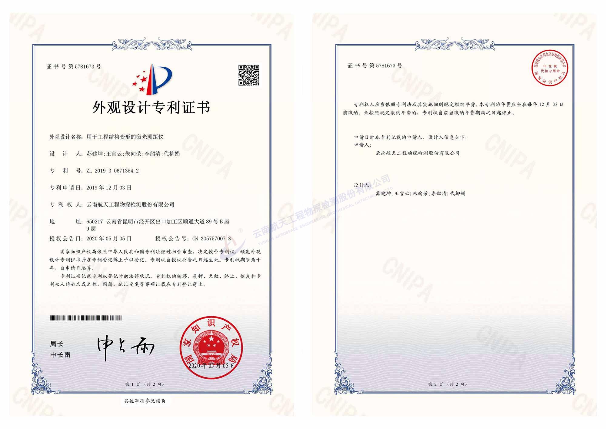 外觀專利證書