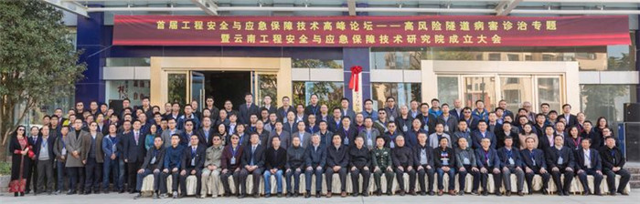 11月9日上午9點,首屆工程安全與應急保障技術高峰論壇(高風險隧道病害診治專題)(以下簡稱“高峰論壇”)暨云南工程安全與應急保障技術研究院(以下簡稱“研究院”)成立大會在航天檢測辦公大樓順利召開。云南省科學技術院院長侯樹謙、云南省公路學會理事長吳衛平、陸軍研究院曹國侯將軍、昆明經開區管委會主任李河流、云南省建設投資控股集團有限公司總工沈家文等多位領導、院士、專家出席本次大會并致辭講話。